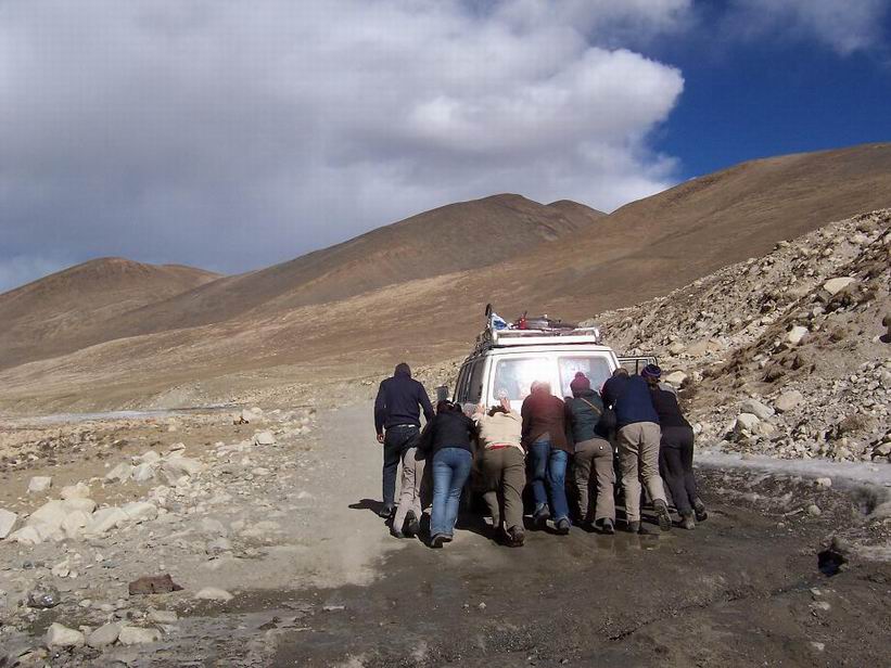 The road from Kathmandu to Lhasa is 1100 Km long and it took 6 days to run along it. Tibet is too much of a country, its high, its vast, empty and filling at the same time. We crossed the Himalaya with a jeep, its the only way this time of the year, the highest point is a pass 5250m high, I was a little out of breath and I dont know if for the lack of oxygen or for the panorama. The road runs not far from the Everest north face but unfortunately it was a little cloudy so I couldnt catch but a glimpse of the Everest / Chomolungma. Tibetans are nice and funny, going around on horseback and tending yaks and sheep. After having seen so many refugees in India and Nepal Im happy to see them in their natural environment, the Tibetan plateau, a kind of plane half the size of Europe and 4000 meters high. Its sad though seeing the Chinese domination, all looks rhetoric, the show of the peoples republic power, the supermarkets in Lhasa and the TV shops where only Han Chinese have money to go. Im determined not to get angry, it doesnt help but its irritating (to say the least) to see such a pure land transformed in a nuclear bin, to know that lakes are drained to make electricity and to observe arrogant rich driving around in huge jeeps covering with dust the people beside the road. I discovered that here people are very dirty, in fact the dirtiest so far seen, I dont recommend a visit in a local toilet! Ive also discovered weird sides of Buddhism as a (former) powerful, temporal religion. In Tibet monasteries were rich, wealthy, ruling people with sometimes great cruelty; certainly a situation far from the original message of the Buddha. Another parallel with our Christian church., but probably all that was still better than the soldiers of the red guard. Only a months now is left from the trip, 30 days and 12.000 km in the Asian trains and buses, more news from China later on.